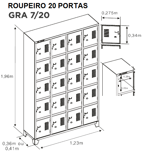 ROUPEIRO DE AÇO 20 PORTAS PEQUENAS CINZA NA DUNORTE MÓVEIS COD 9656